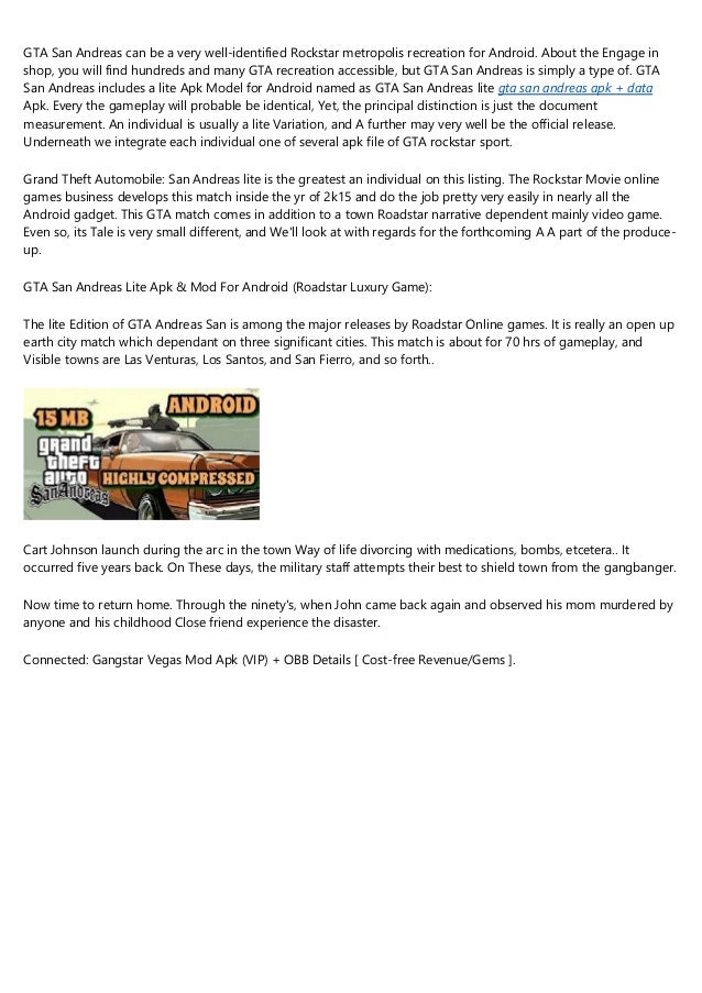 - Download the Gangstar Vegas file and download its data that are mostly in obb format.